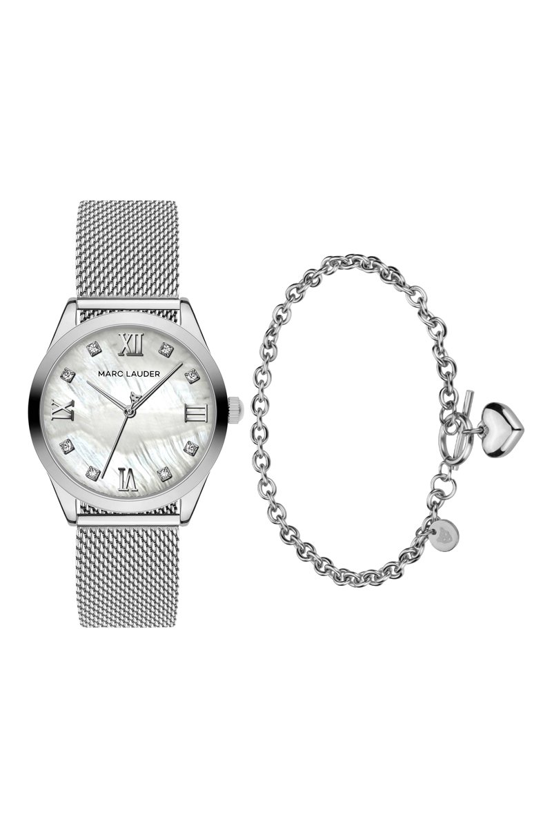 Coffret relógio de quartzo em zircões e pulseira Geneva