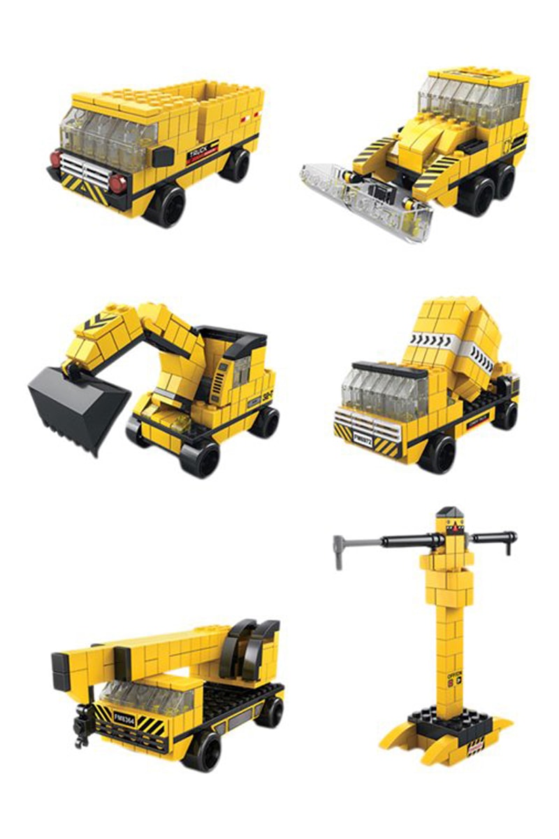 Este conjunto 6 em 1 - tema obra - é composto por 1000 peças e permite construir e montar diferentes elementos fiéis ao universo dos veículos de construção.