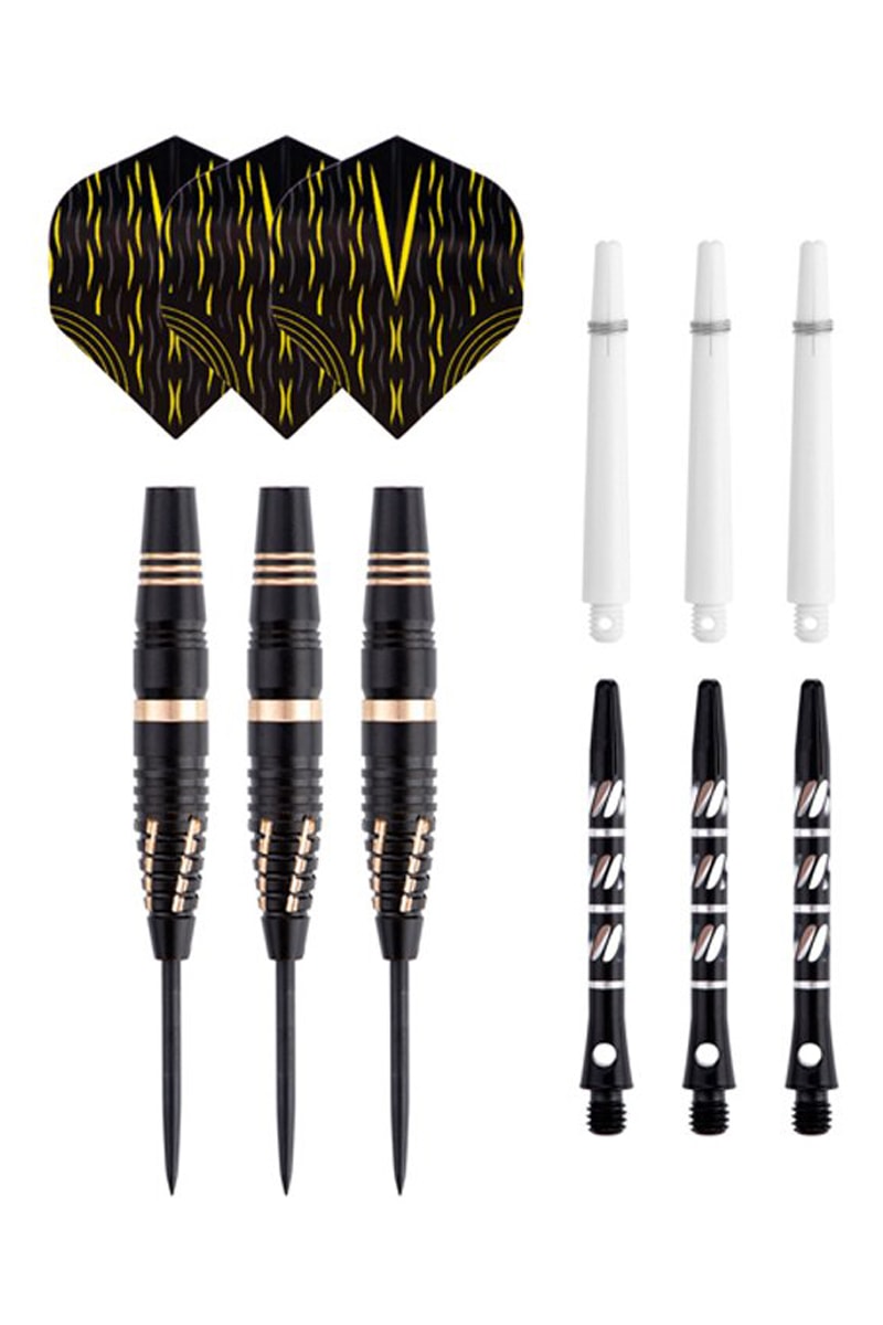 Jogo de 3 dardos profissionais com ponta plástica 24gr - Modelo Fire - Dourado