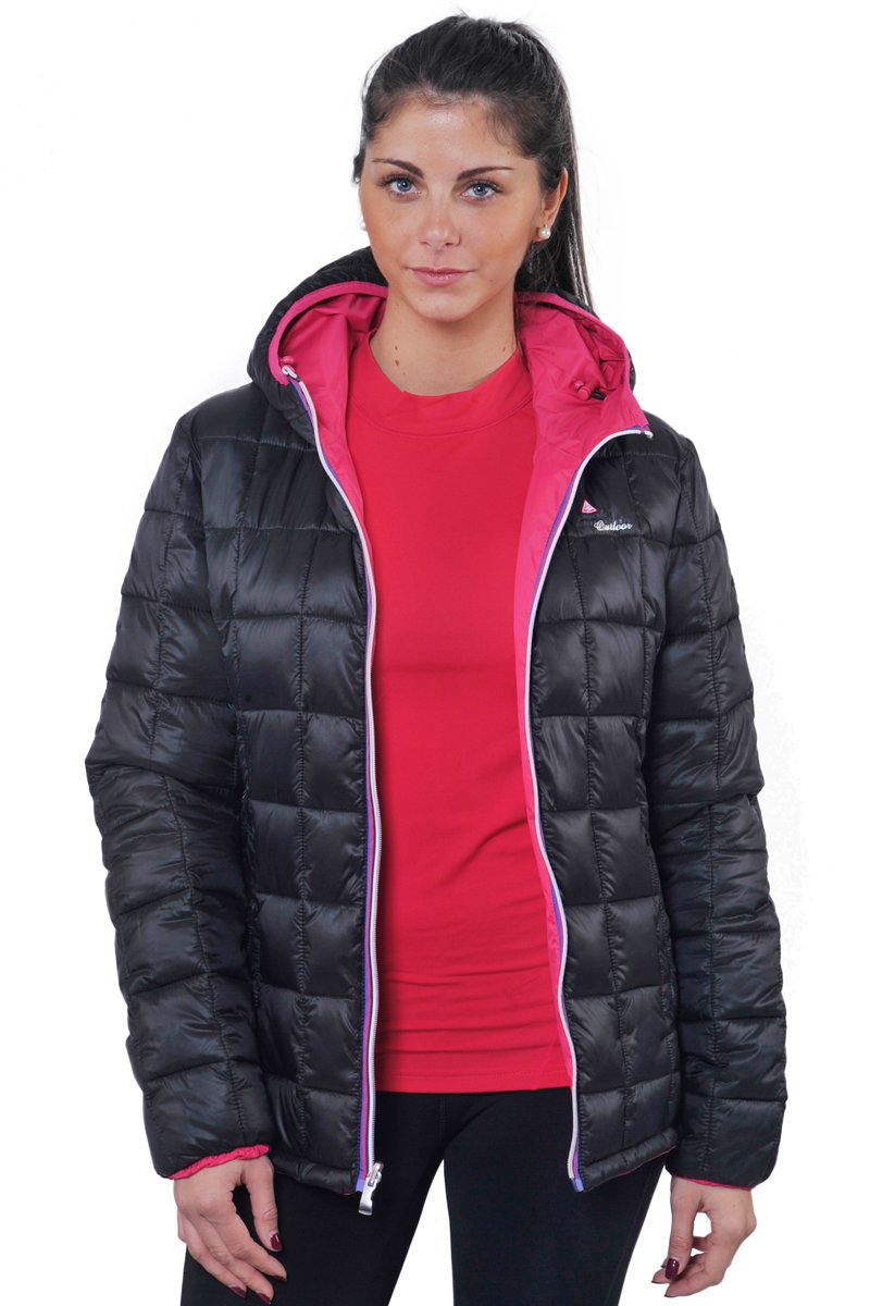 Blusão reversível com capuz Awa - Preto e fúcsia