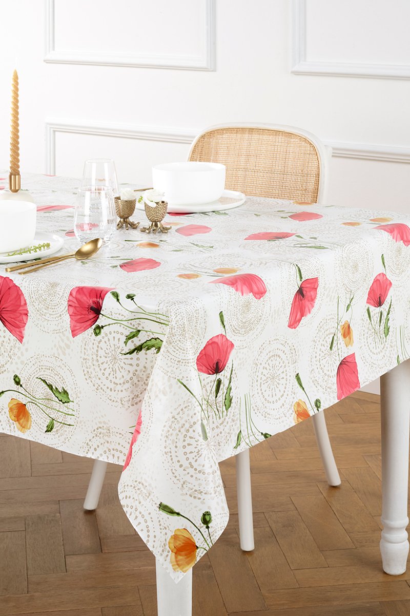 Toalha de mesa retangular anti-nódoas Papaver - Esbranquiçado - 140 x 250 cm