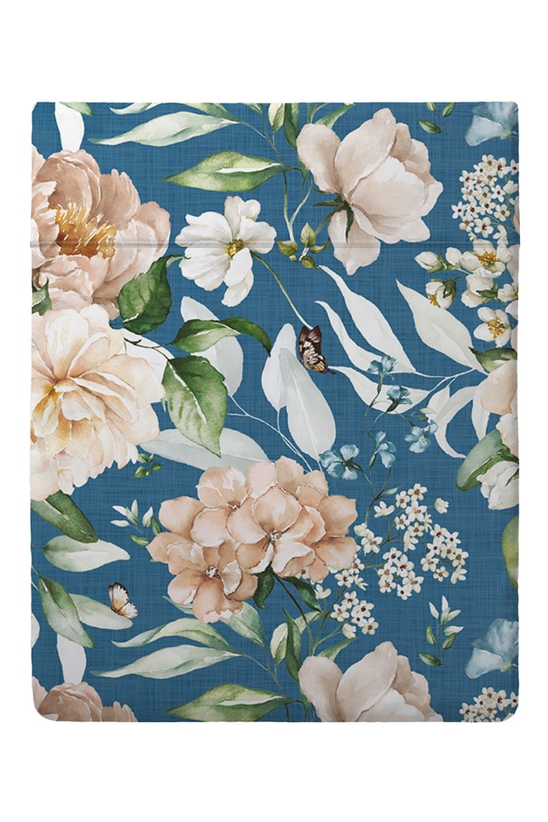 Lençol liso em cetim de algodão 80 fios/cm² - Azul-petróleo