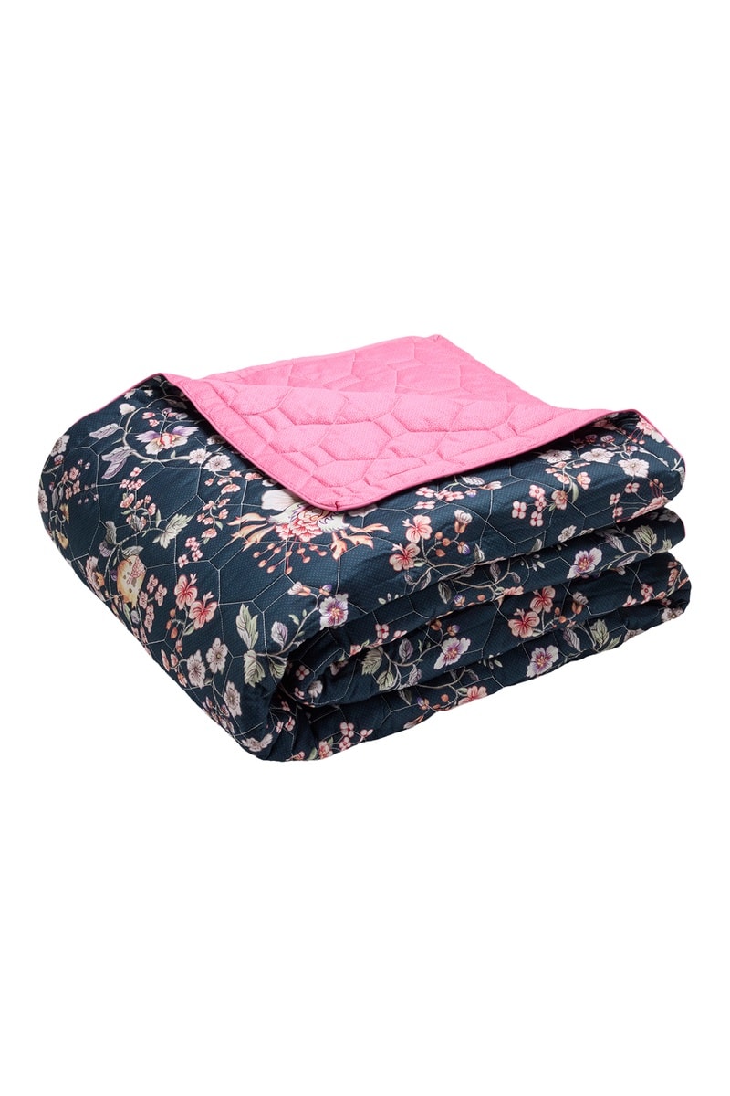Colcha em cetim de algodão 80 fios/cm² - Azul-escuro e rosa