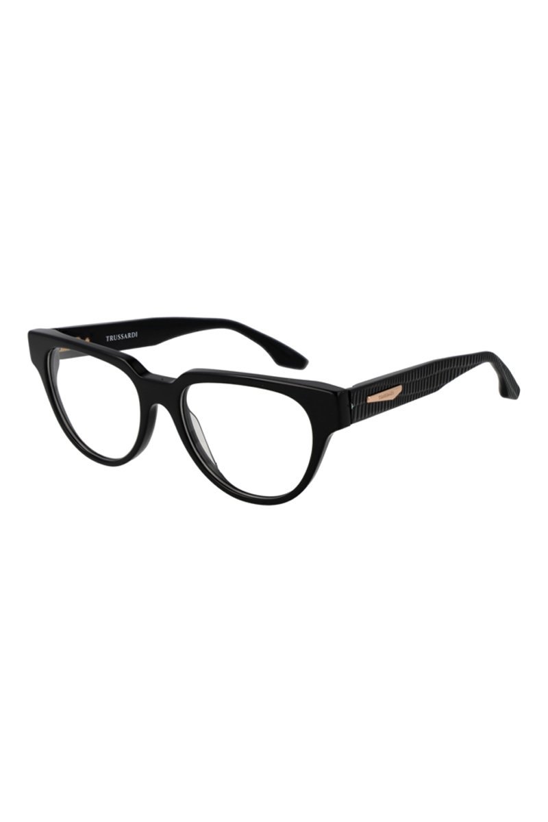 Estampado às riscas em relevo e aplicação em metal com logótipo nas hastes.