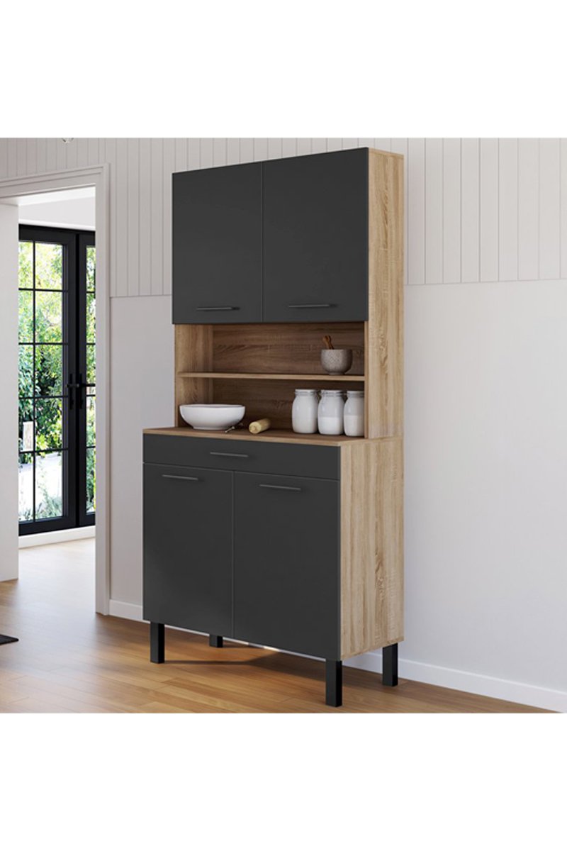 Móvel de cozinha Divino - Preto e imitação de madeira