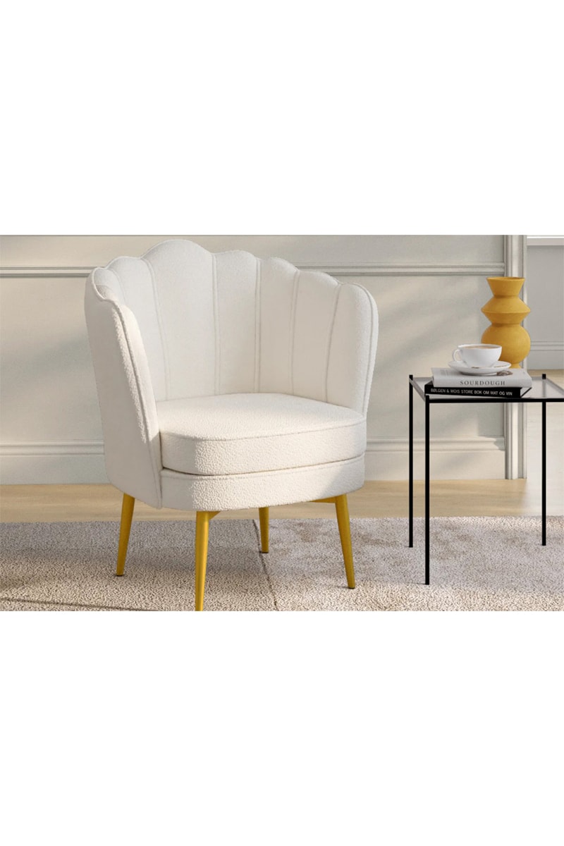 Cadeirão Arielle - Branco e dourado - Veludo