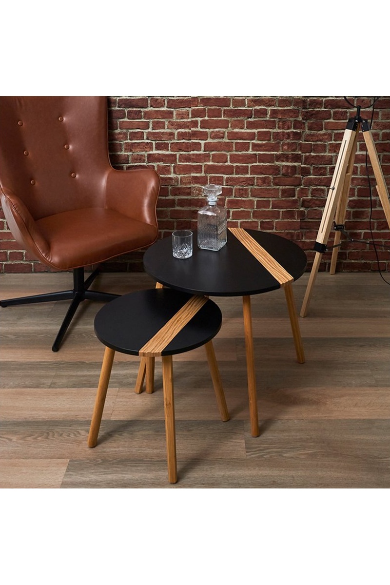 Mesa de centro encaixável - Preto e natural