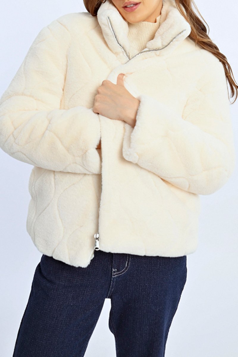 Casaco em pelo sintético de mangas compridas.