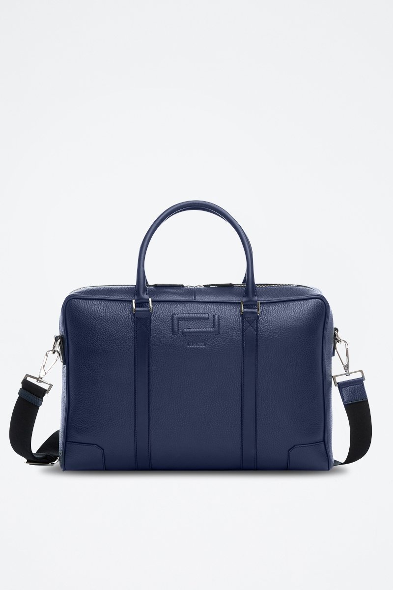 Porta-documentos de couro granulado.