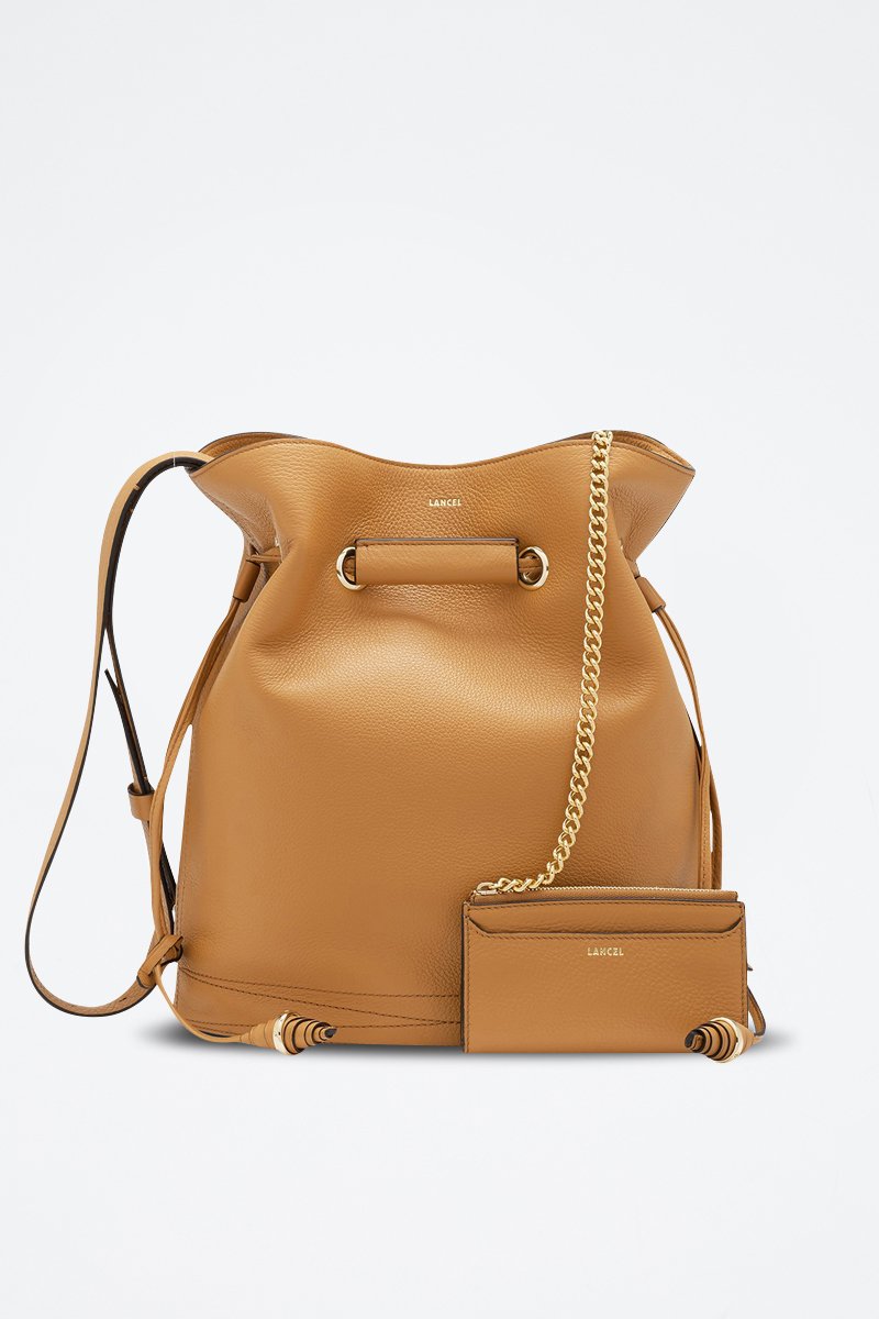 Mala bucket de couro Le Huit L - Camel
