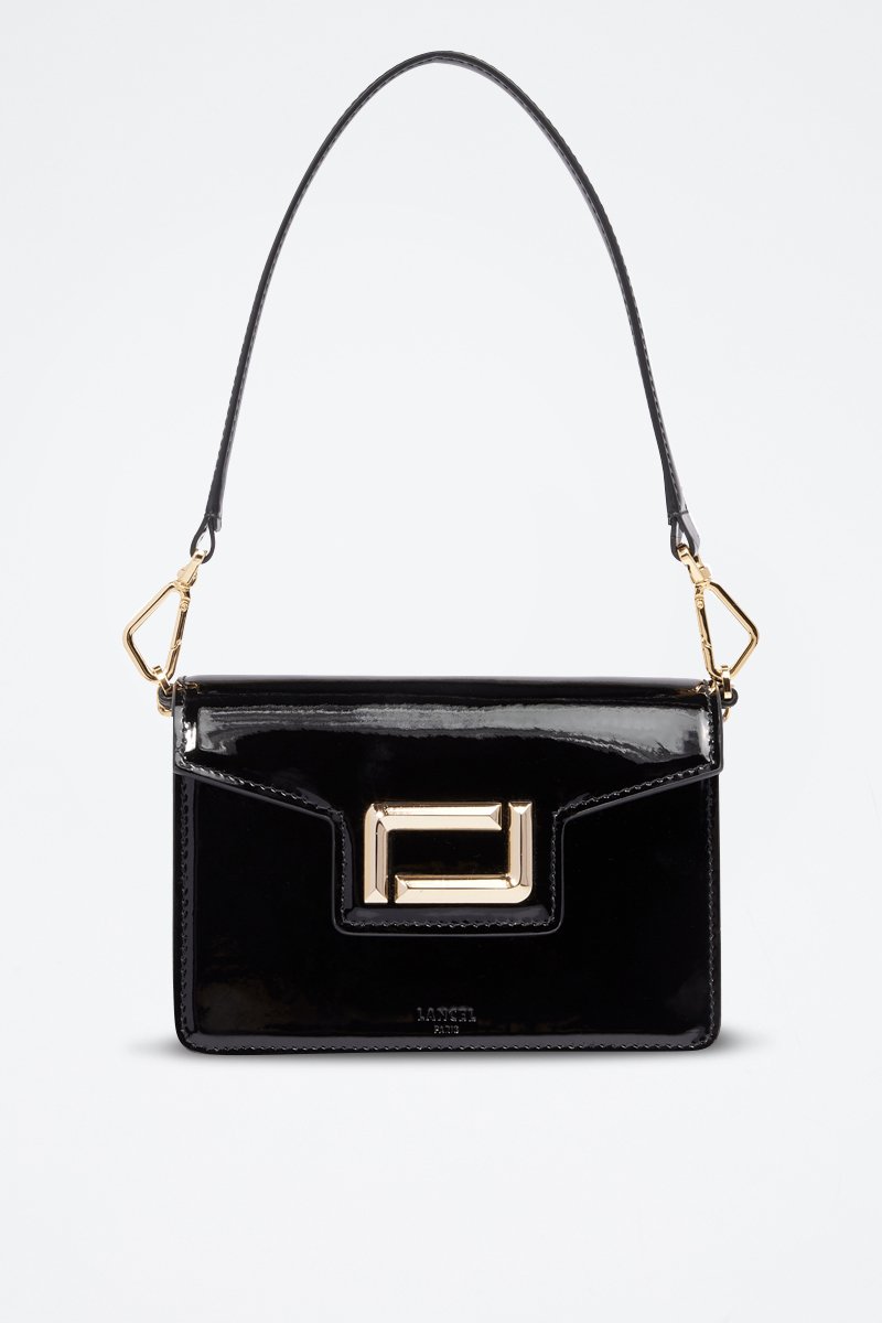 Mala de ombro de couro envernizado Angèle Mini - Preto