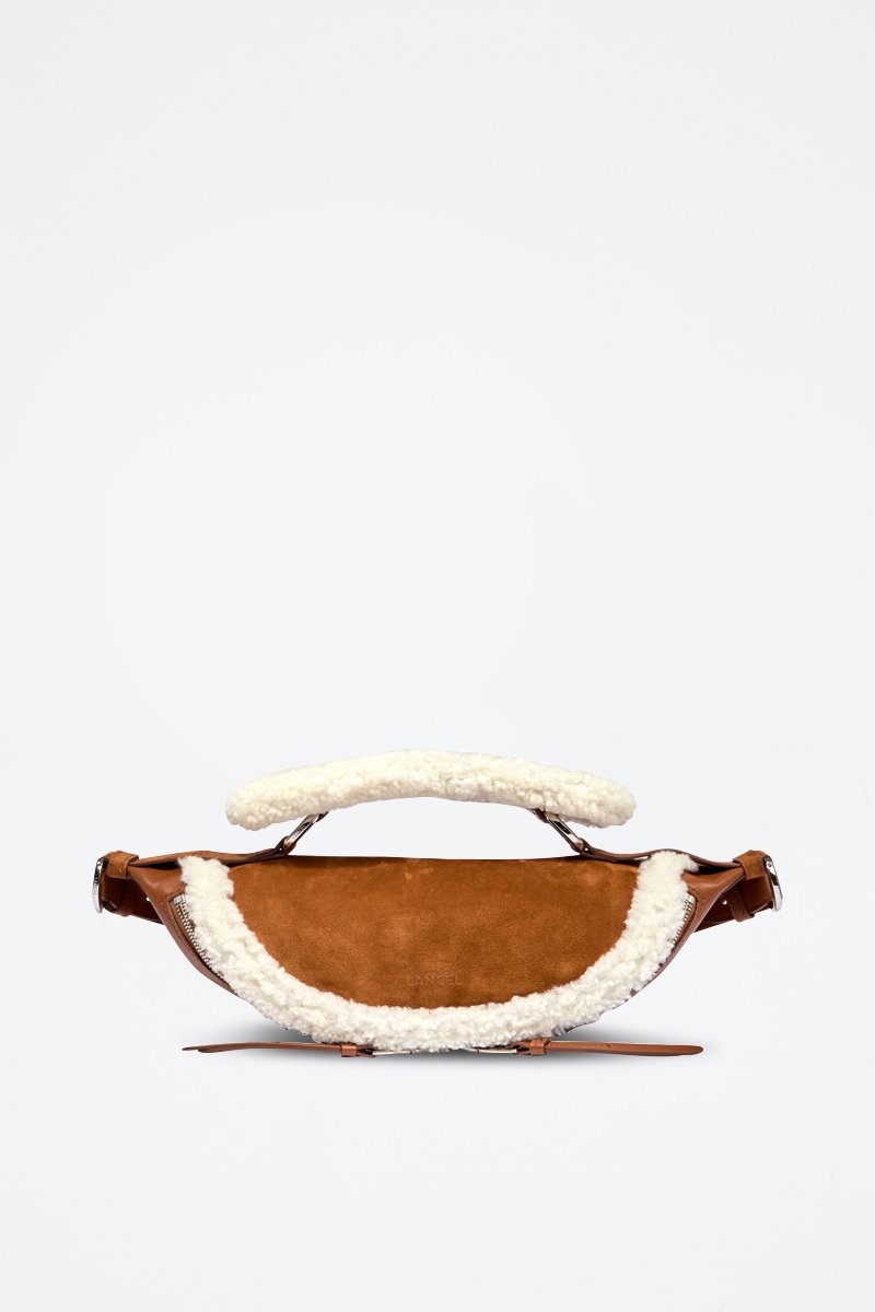 Mala a tiracolo de couro de carneiro Origami S - Castanho