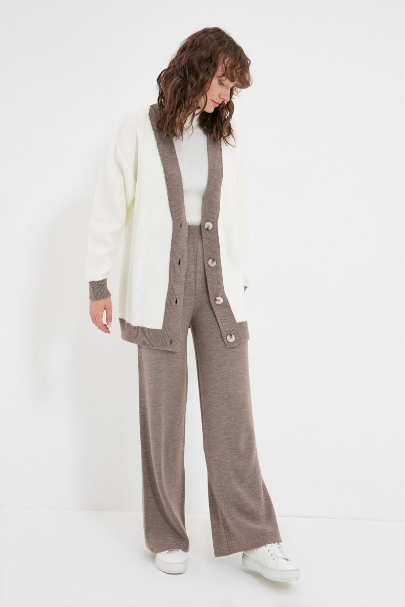 Casaco de malha e calças Branco e toupeira