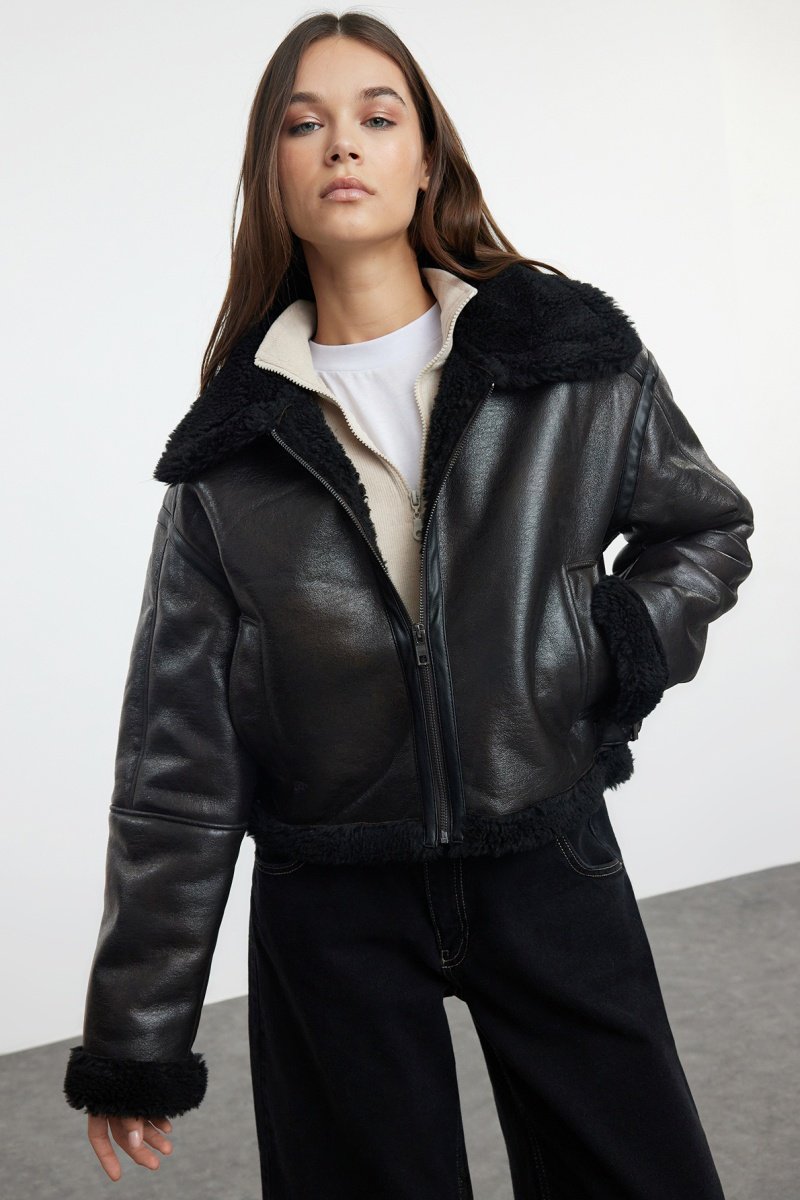 Pelo sintético no decote, nas mangas e na base.
