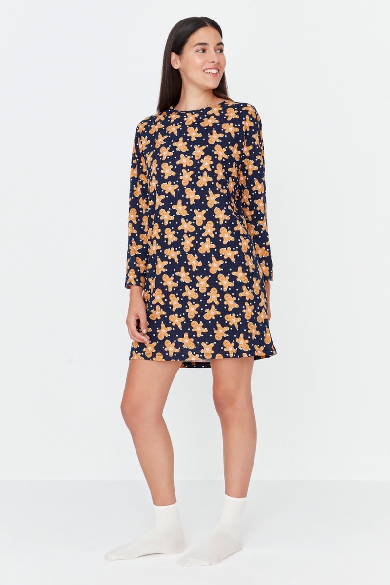 Vestido trapézio de mangas compridas.