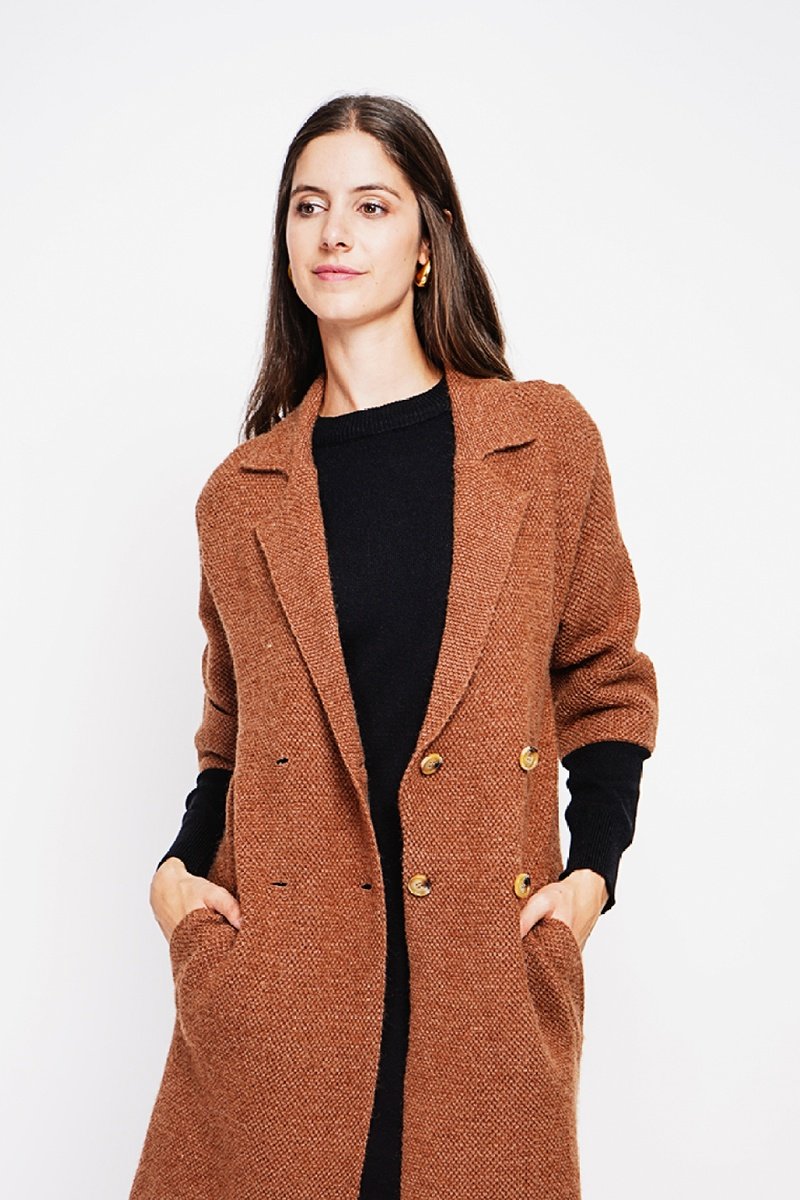 Sobretudo oversized de mangas semi-compridas com dobras.