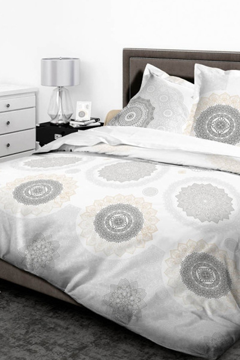 Conjunto de edredão em algodão 57 fios/cm² - Branco e cinzento