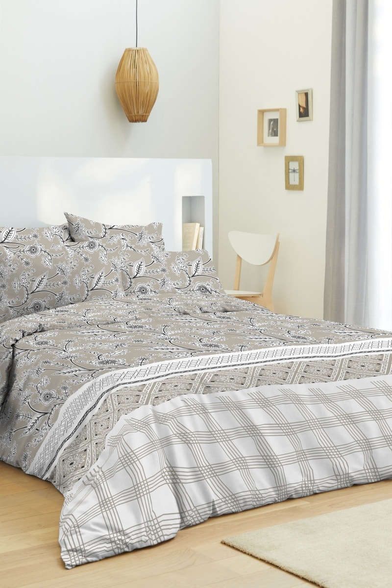 Conjunto de cama reversível em algodão Floral Taupe - 57 fios/cm² - Toupeira