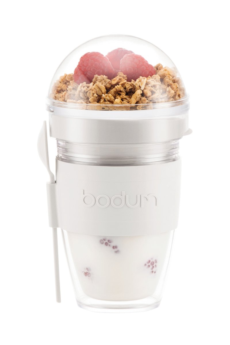 Dupla parede permite manter o leite e o iogurte frescos até que você esteja pronto para comer.
