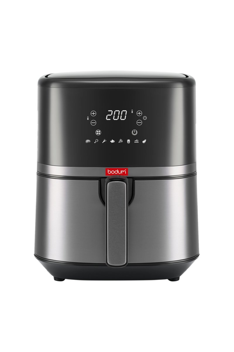 Fritadeira eléctrica a ar em aço inoxidável.