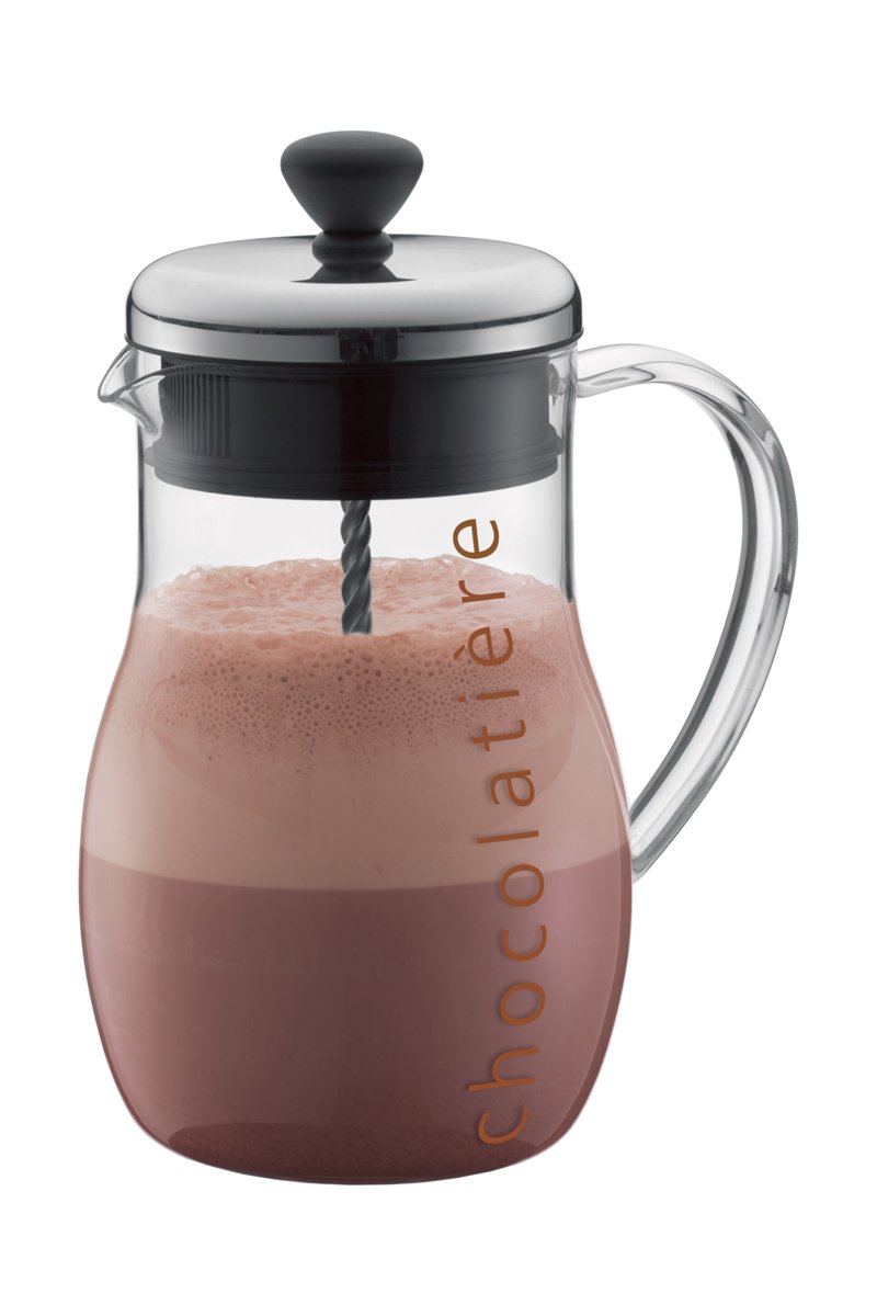 Funciona com chocolate verdadeiro, xarope de chocolate ou chocolate em pó.