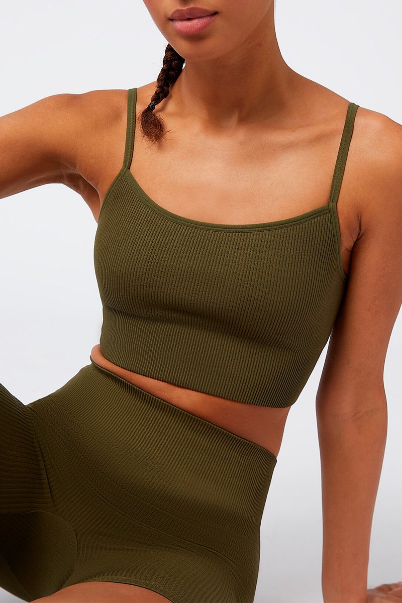 Soutien desportivo em malha canelada sem aros.