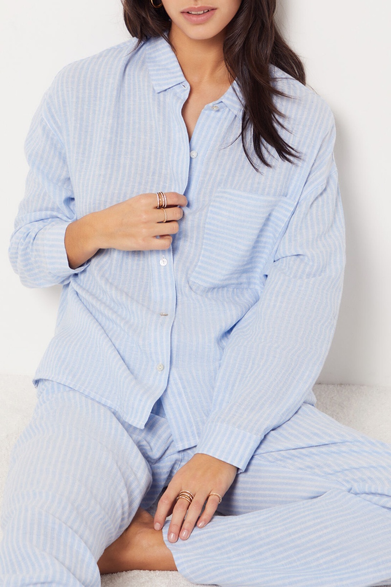 Camisa de pijama em linho - Azul-celeste