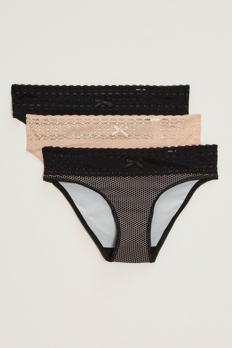 3 cuecas Les Quotidiens - Preto e bege - Variance
