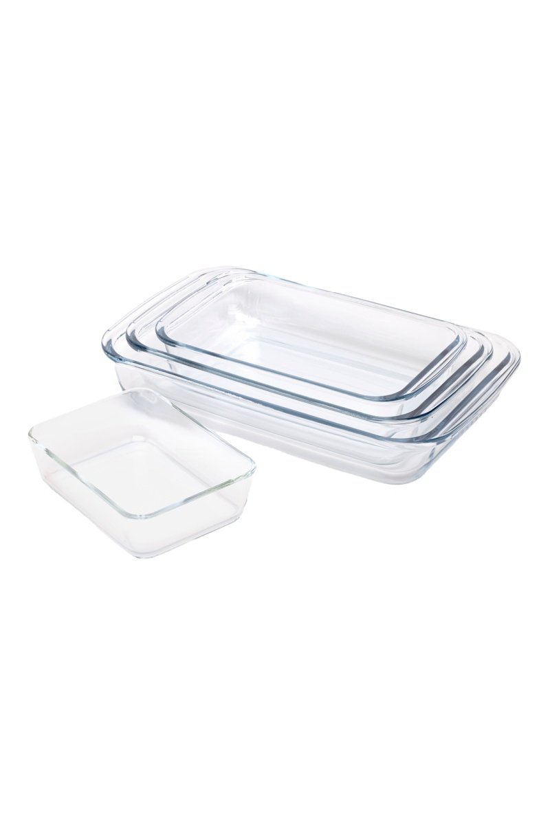 4 travessas para forno em vidro.