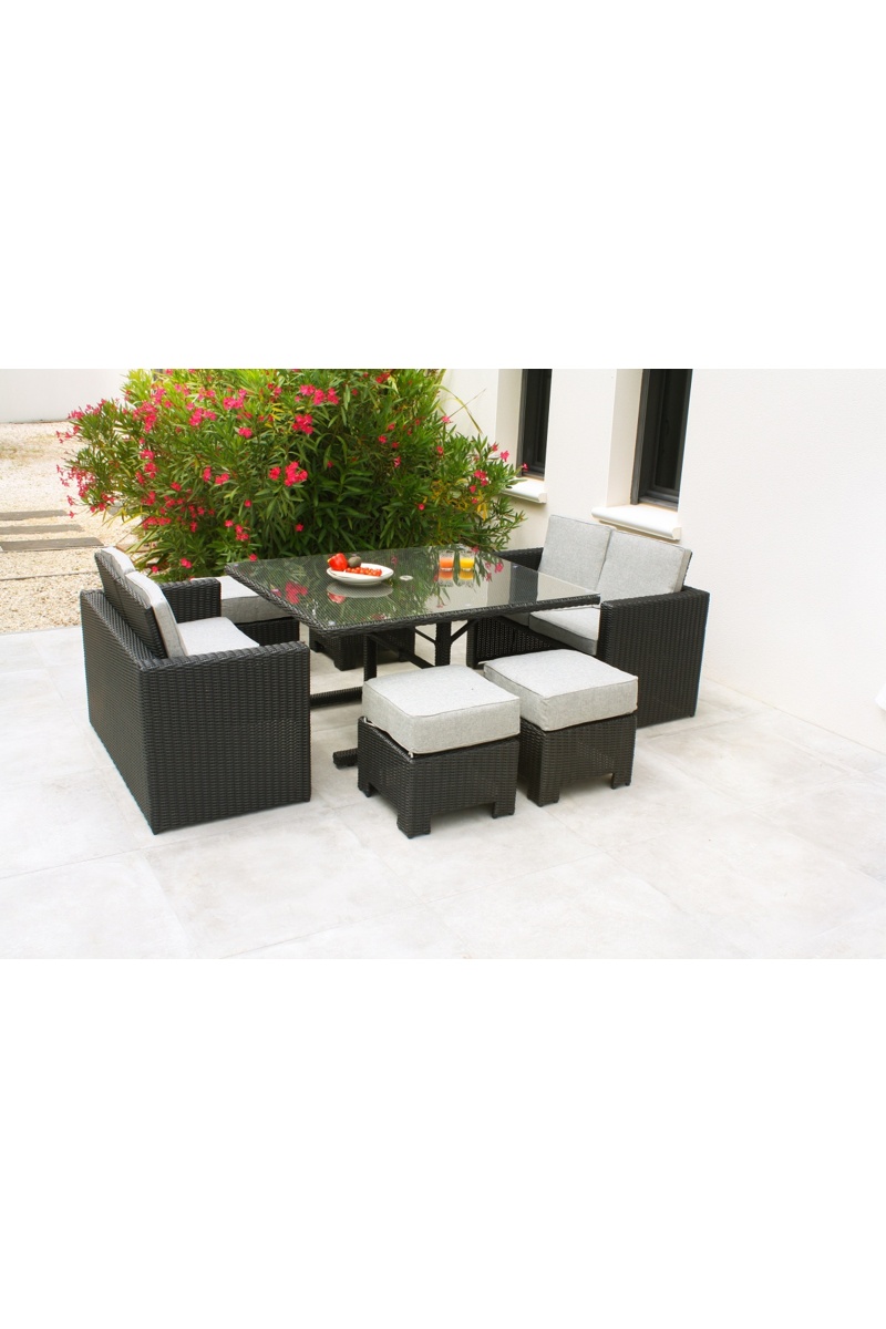 Conjunto de jardim 8 lugares em alumínio e resina entrançada com:
