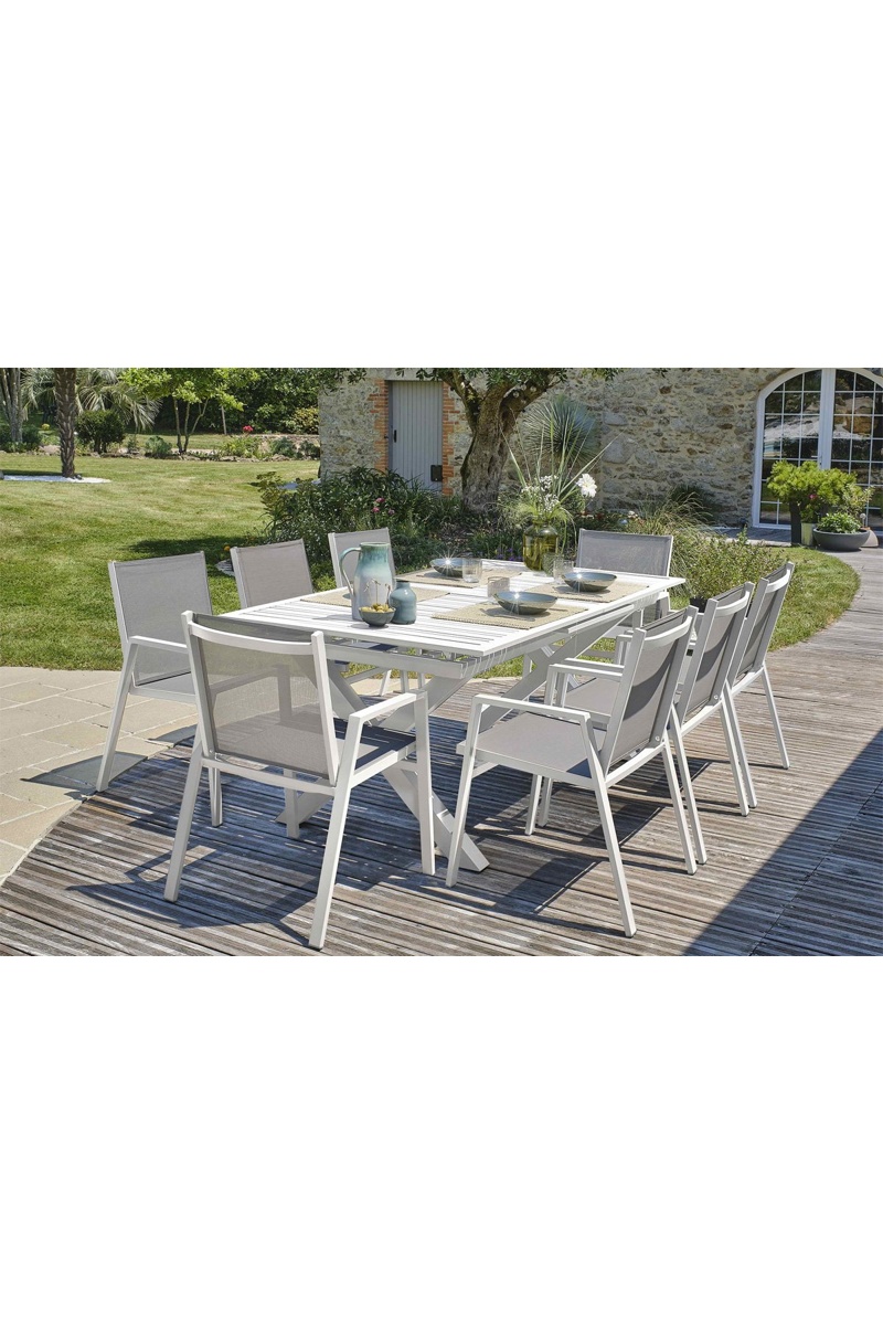 Conjunto de jardim Floride - 8 lugares - Cadeirões empilháveis - Mesa extensível