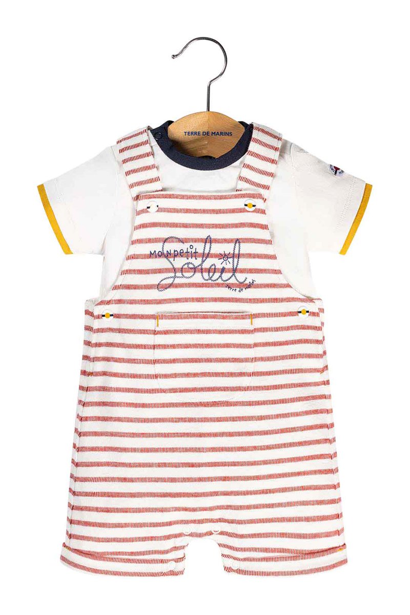T-shirt e jardineiras Ikalou - Branco e vermelho - Terre de Marins