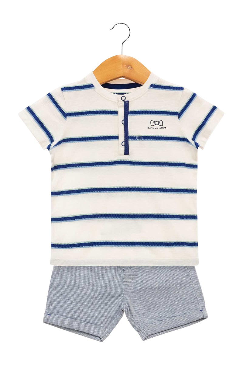 T-shirt e calções - Branco e azul-escuro