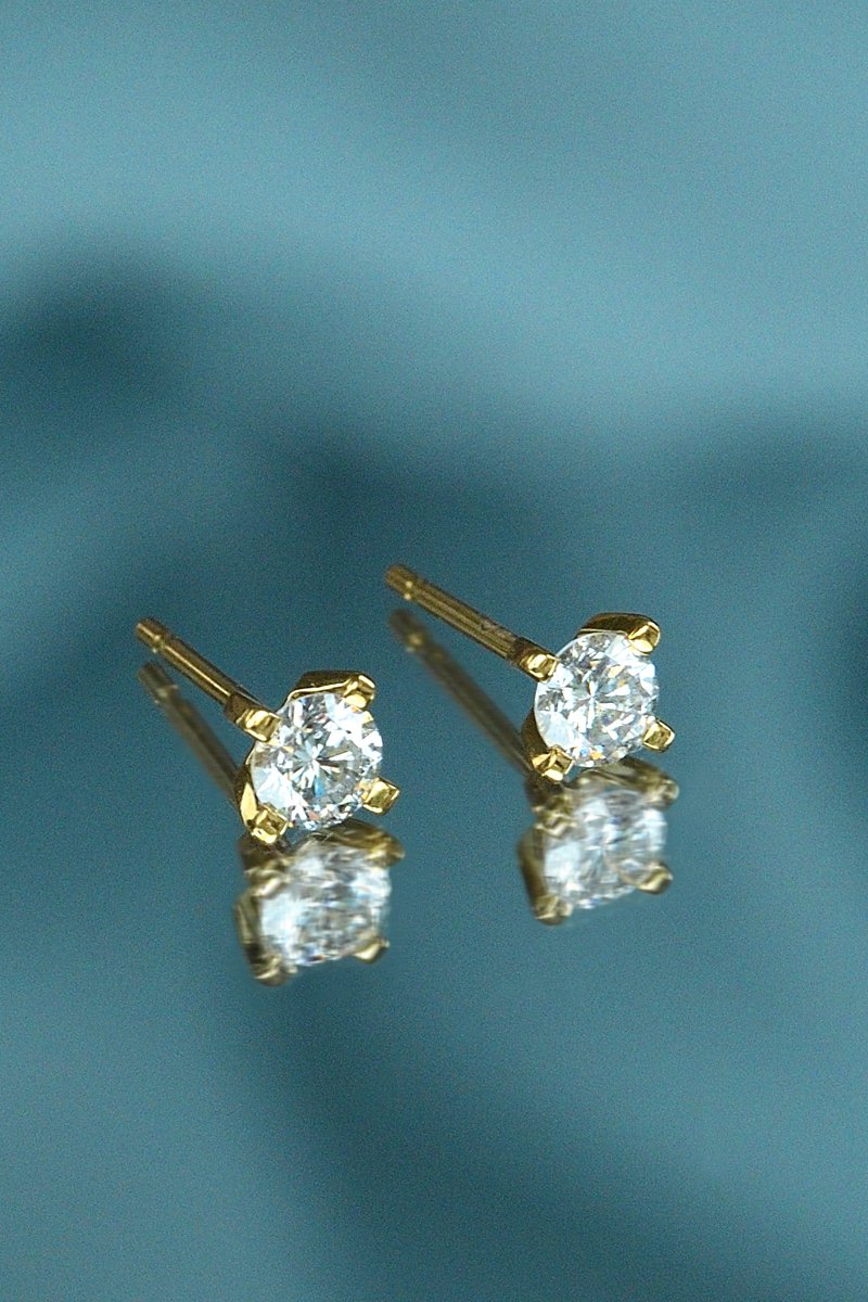 Brincos em ouro amarelo com um diamante.