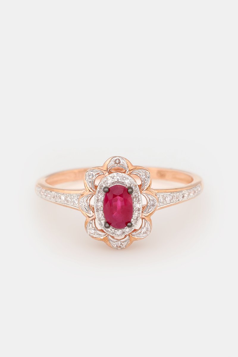 Anel Hasna - Ouro rosa, diamantes e rubis