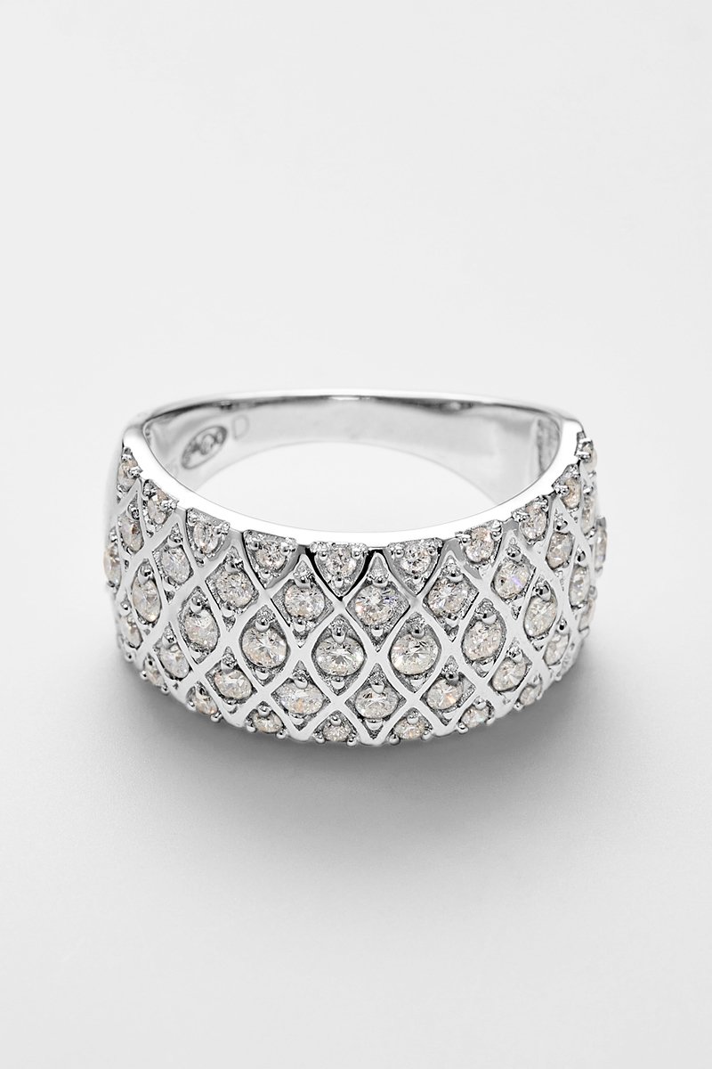 Anel em ouro branco com 48 diamantes.