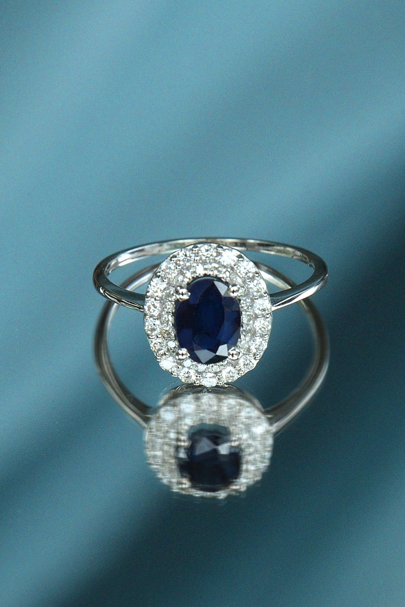 Composição: ouro branco 375/1000, diamantes 0,27 quilates/36 e safira 1,06 quilates/1