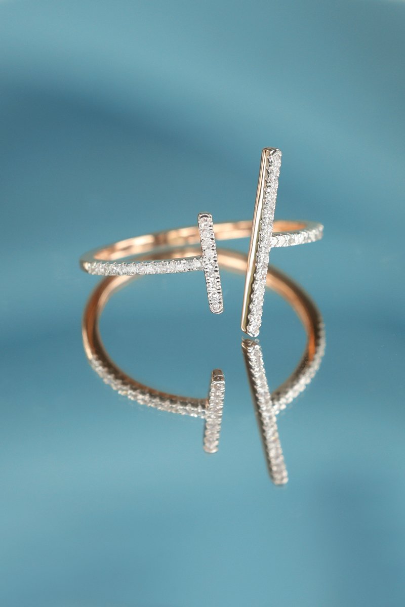 Anel Parallèle asymétrique - Ouro amarelo e diamantes