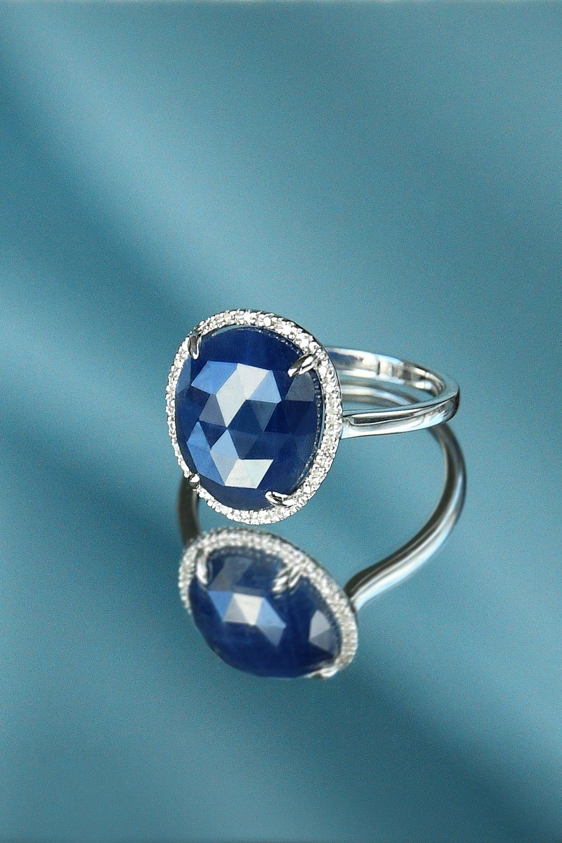 Anel Bermudes Nouvelles - Ouro branco, diamantes e safira