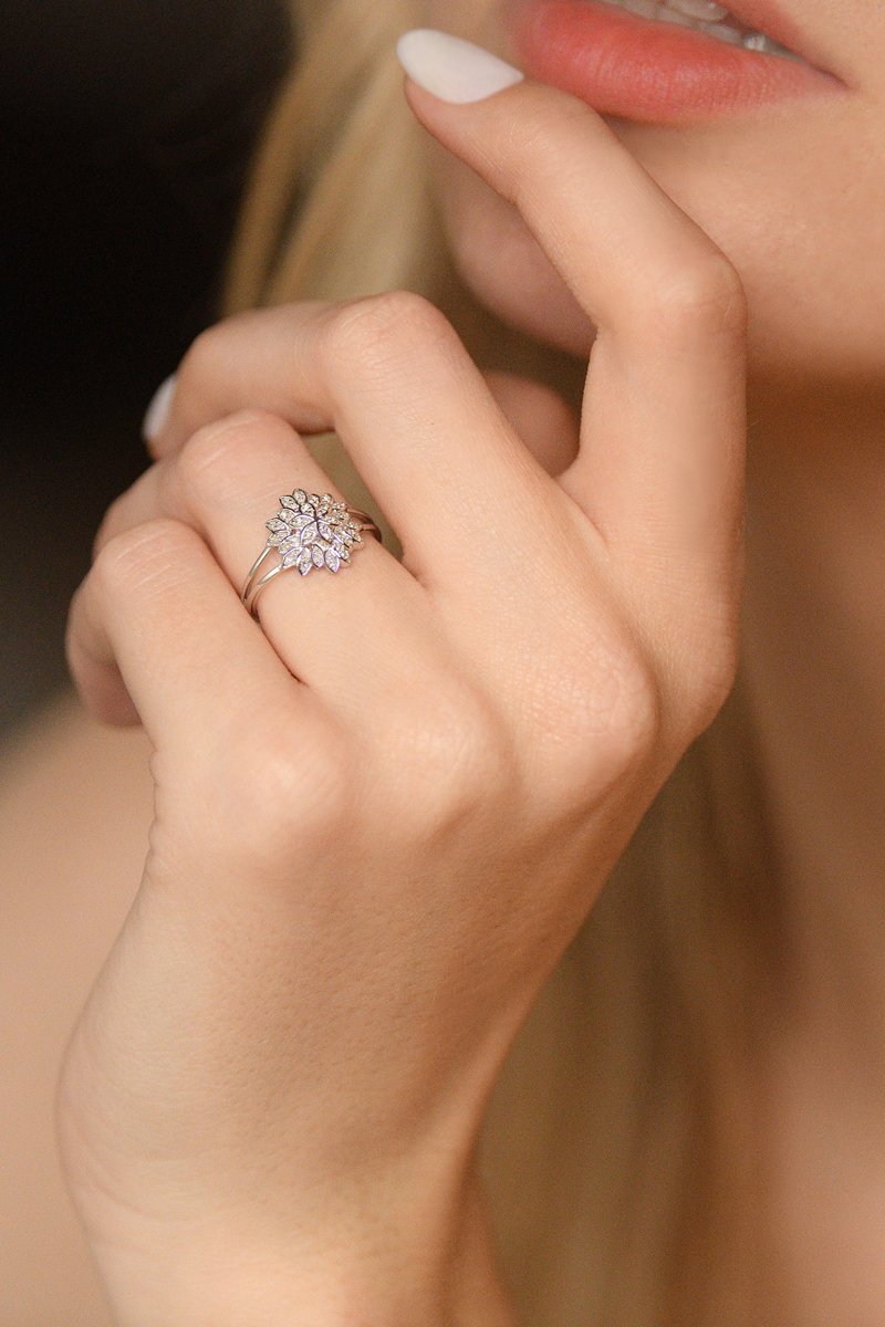 Anel em ouro branco com 24 diamantes.