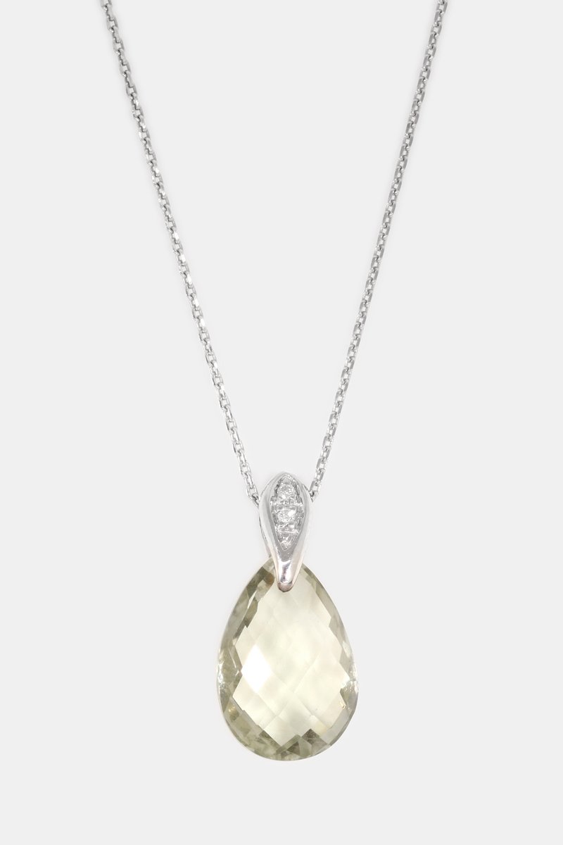 Pendente em ouro branco com 12 diamantes e uma ametista.
