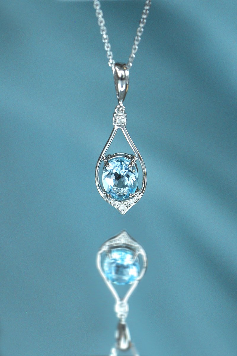 Pendente Brillant - Ouro branco, diamantes e topázio