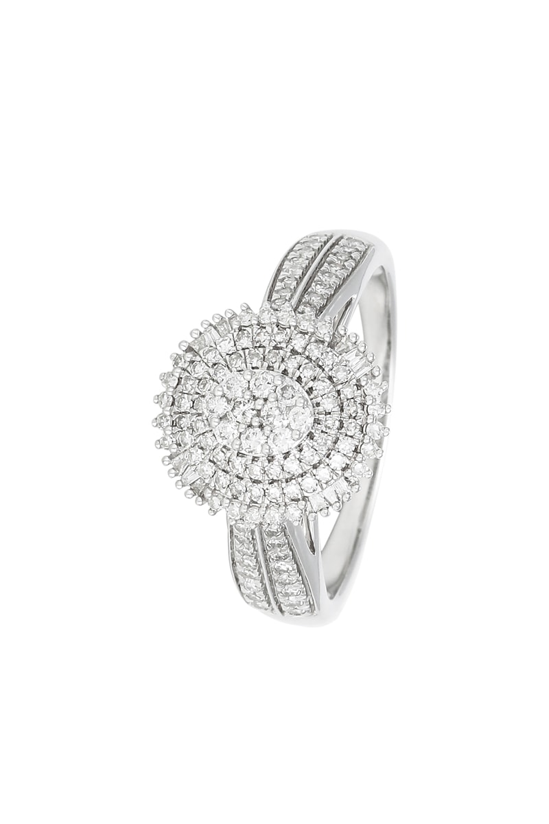 Anel em ouro branco com 122 diamantes.