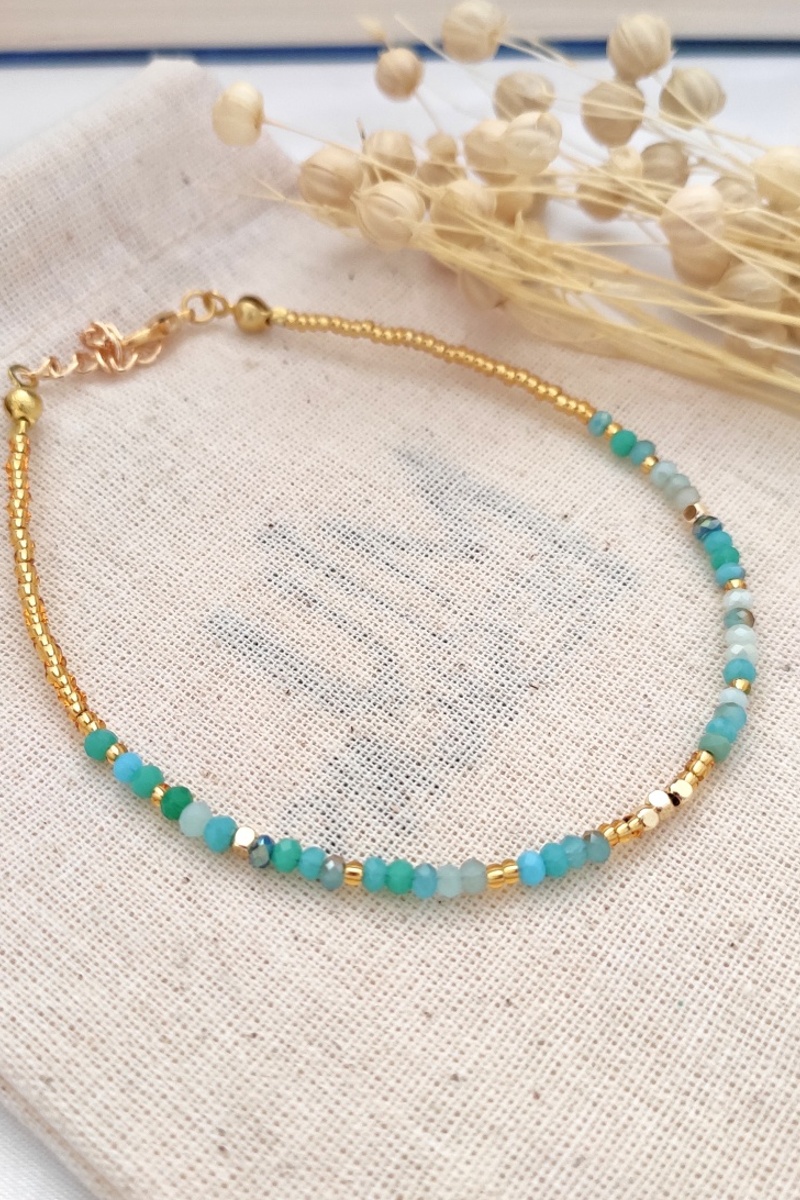 Corrente para tornozelo - Turquesa e dourado