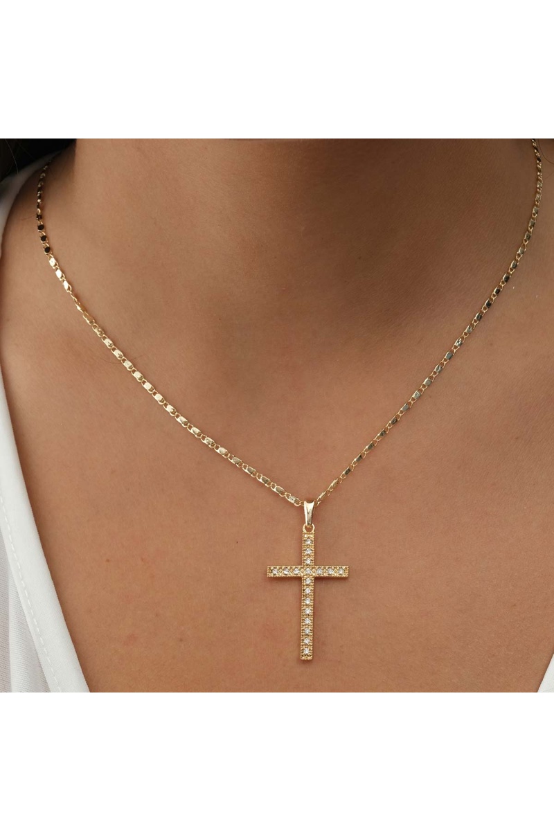 Colar cruz - Latão banhado a ouro e zircões
