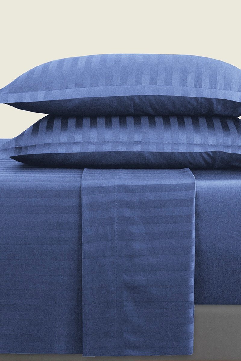 Conjunto de lençóis em cetim de algodão 80 fios/cm² Dobby - Azul-cobalto