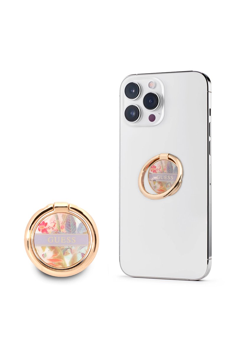 Argola universal assinada Guess que se cola na traseira do seu smartphone ou tablet com o adesivo 3M ultra resistente sem danificar o aparelho uma vez retirado.