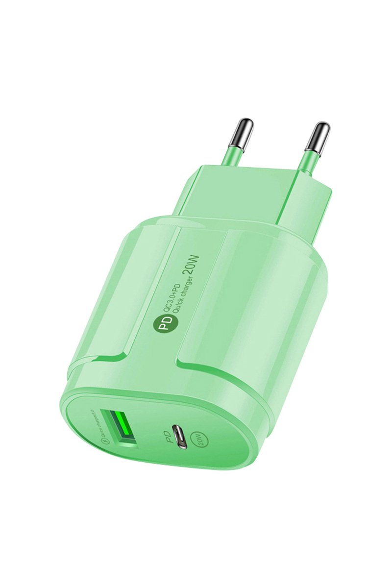 Carregador setor 20 W Quickcharge USB e PD USB Tipo-C - Verde - EKO