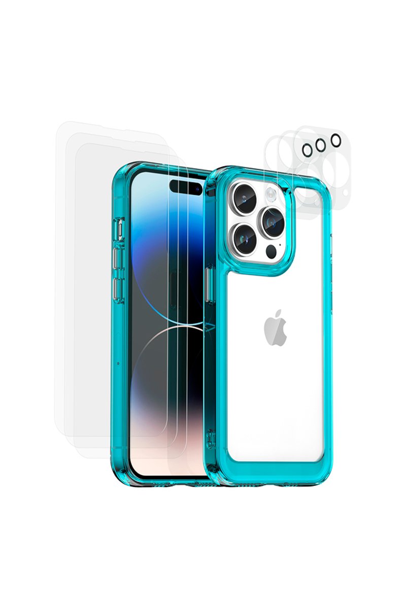 Capa Shockproof e 6 películas de proteção iPhone 14 Pro - Azul - EKO