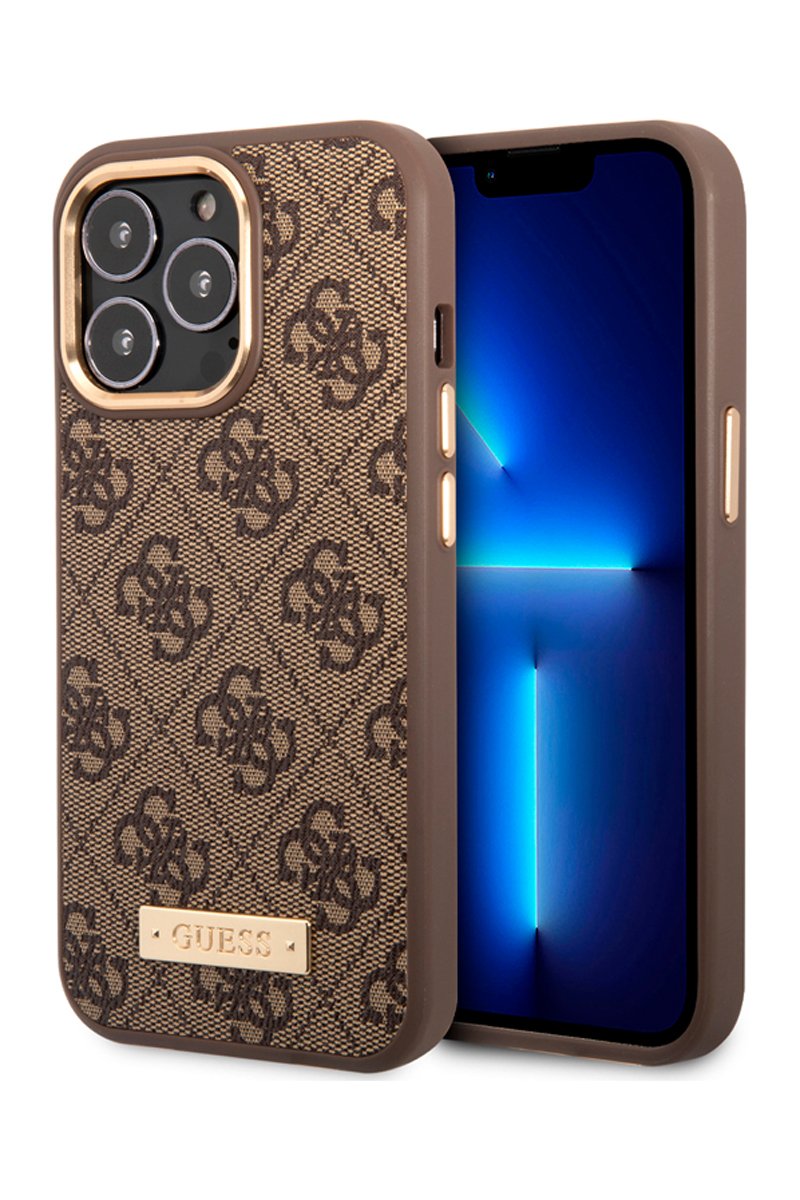 Capa iPhone 13 Pro Metal Plate Magsafe - Castanho e dourado - Guess